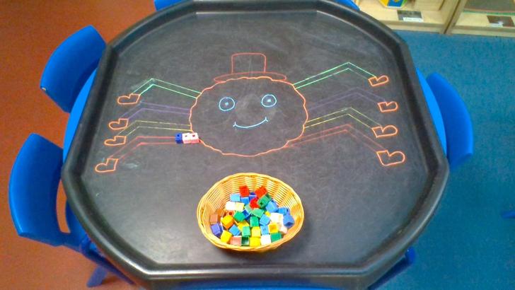 This week the children are learning the Nursery rhyme 'Incy wincy spider' and enjoying many activities involving spiders and water. On the Maths table the children have been using multilink cubes to measure Incy's legs, counting how many they needed and identifying what colour they were. On mark making the children have continued to develop their fine motor skills, colouring in lots of pictures that link to the song and trying their best to stay within the line. In the water tray we have worked on our gross motor skills, using jugs of water to wash the 'Incy' out (down the drainpipe). We have been getting messy on the creative table painting our hands black to create spiders and using glue to stick on eyes. In the tuff tray we really enjoyed using tweezers to pick up the different colour and size spiders.