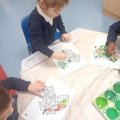 The children have continued to read the book 'Guess How Much I love You'. They have enjoyed making hearts with long arms to give to someone they love. Autumn leaves tissue paper and cotton bud painting and matching the tools to the correct outlines on the table. The children have continued to practise their pencil control by tracing over numbers 0-10 on our maths table and copying words from our book on the literacy table. The children have also been practising their table setting skills in our home corner.