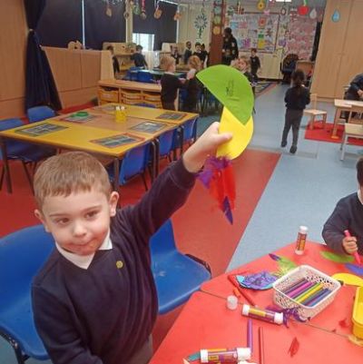 This week in Nursery the children continued to read the book 'Rainbow Fish'. The children enjoyed many activities, such as decorating their own fish using paper plates, paints and their fingers. They practised their fine motor skills, cutting out different sizes of fish. On our writing table, the children coloured a rainbow fish, told the staff why they are good friends and then practised their writing by copying what we had written. The children have been recognising numbers, adding two small numbers together and practising writing them.