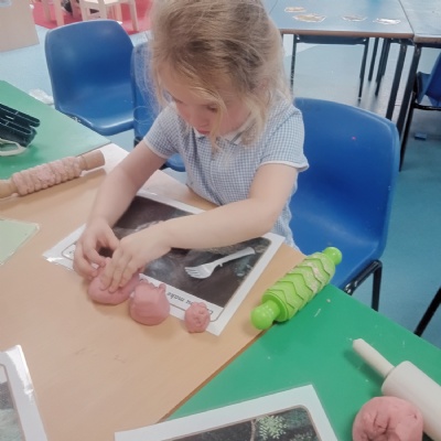 This week Nursery have continued to read the book 'The Three Little Pigs'. They have enjoyed making different types of pigs and wolves using lots of different coloured, textured materials. They have been packing the pigs suitcase on the maths table. Recognising the numbers and placing the correct amount of items into the suitcase. The children have had lots of fun using the playdough to make the pigs faces and their emotions. On the literacy table the children worked hard to sequence our story of the week using pictures from the book.