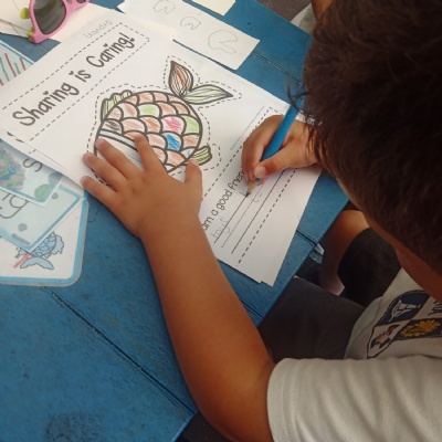 This week in Nursery the children continued to read the book 'Rainbow Fish'. The children enjoyed many activities, such as decorating their own fish using paper plates, paints and their fingers. They practised their fine motor skills, cutting out different sizes of fish. On our writing table, the children coloured a rainbow fish, told the staff why they are good friends and then practised their writing by copying what we had written.  The children have been recognising numbers, adding two small numbers together and practising writing them.
