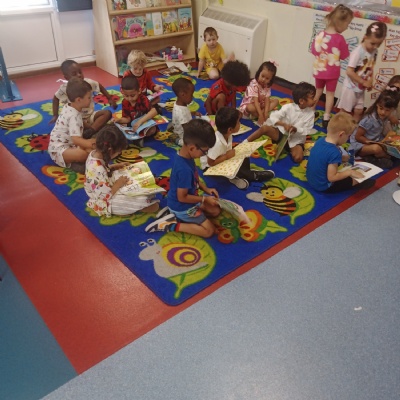 This week the children have also enjoyed a visit from the library. They have listened to stories joined in with the actions and learnt about the library.