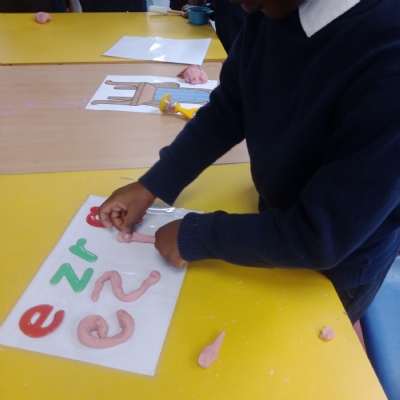 The children have had fun playing with porridge, putting it in different sized bowls and matching the characters from the book to their bowls. They have also really enjoyed our literacy table, practising writing all the sounds they have learnt, their names and lots of different words from our book of the week.