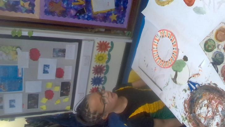 The children were keen to learn more about the African culture so, using traditional African colours and patterns, they made African necklaces which they then wore for their African drumming lesson.