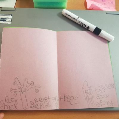 This week, the children have been innovating the story of ‘We’re Going on a Bear Hunt’ to ‘We’re Going on a Zombie Hunt’ and ‘We’re Going on a Treasure Hunt’. The children have enjoyed creating their own story books based upon the new stories. They have been acting them out and choosing new settings for them, as well as using the onomatopoeia that they learnt about last week.
