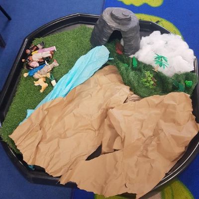 A new half term marks the start of a new topic and so we are now looking at ‘Explorers’. The children have been practising reciting the classic story of ‘We’re Going on a Bear Hunt’, as well as creating maps and binoculars to find their very own bear. They have used the small world toys to act out the story too, as well as using their actions.