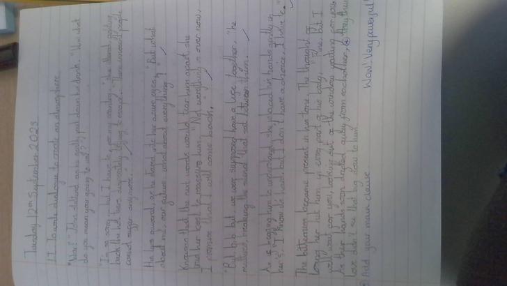 This week in English the class have started their new unit ‘Mourning Dove’ a video clip with no words. The children have done brilliantly bringing the characters and their story to life using dialogue and here is Gideon’s (our golden writer).